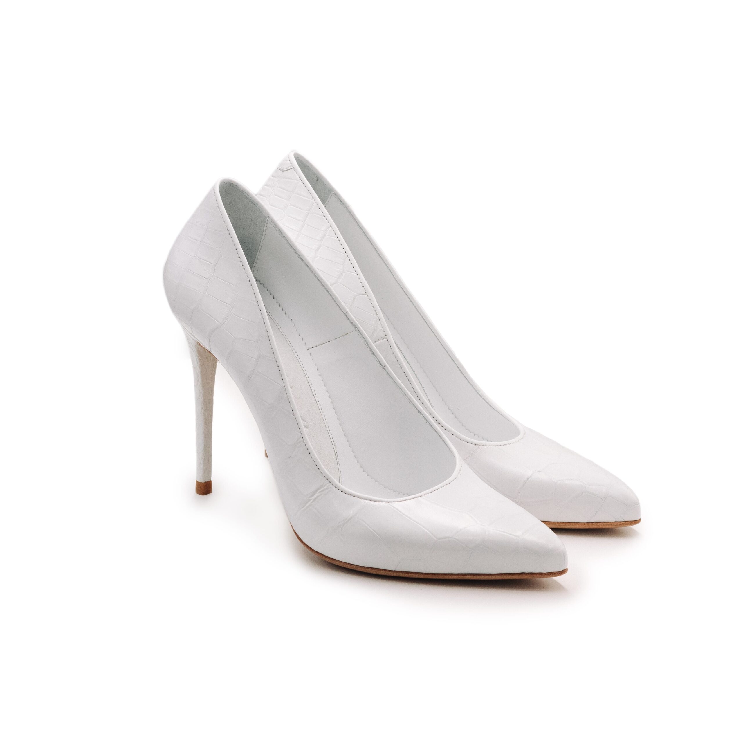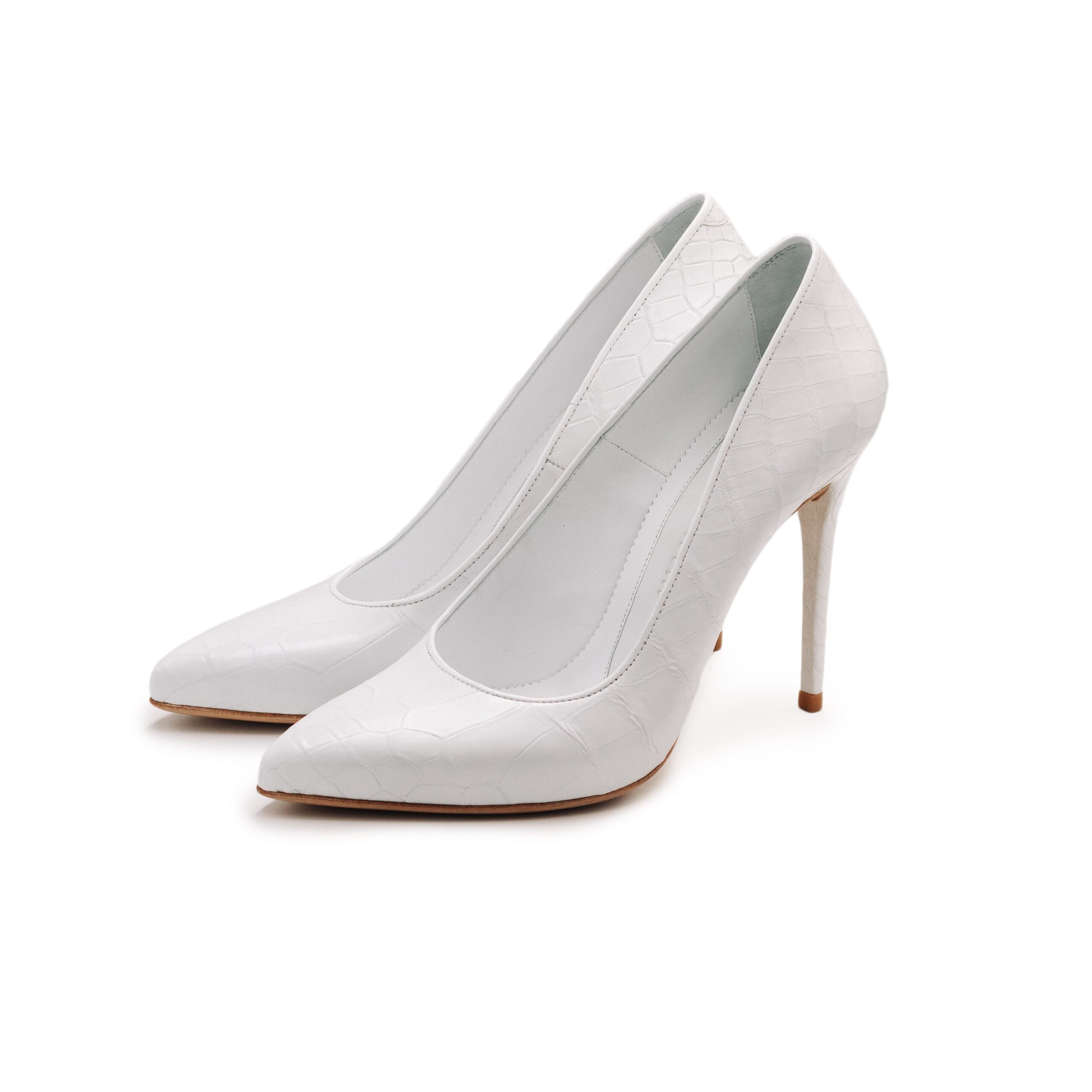 Жіночі човники білі зі шкіри крокодила: індивідуальне пошиття на замовлення у Києві
