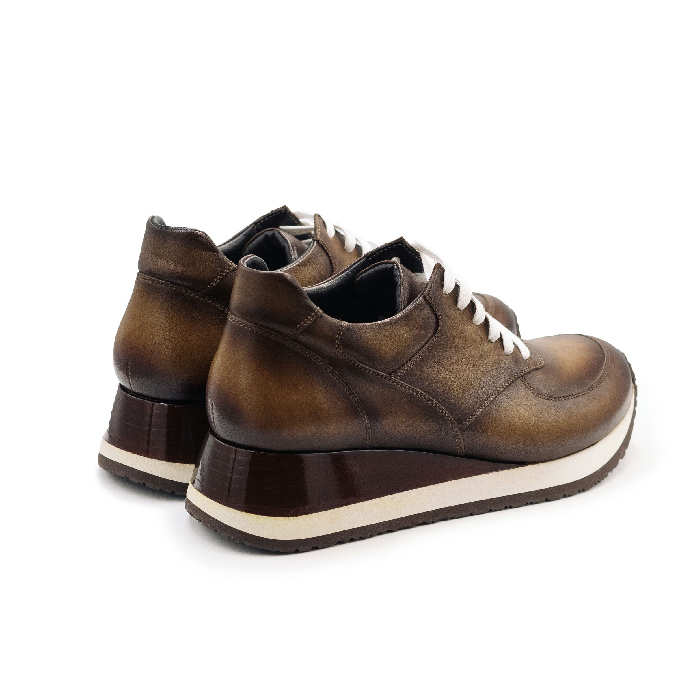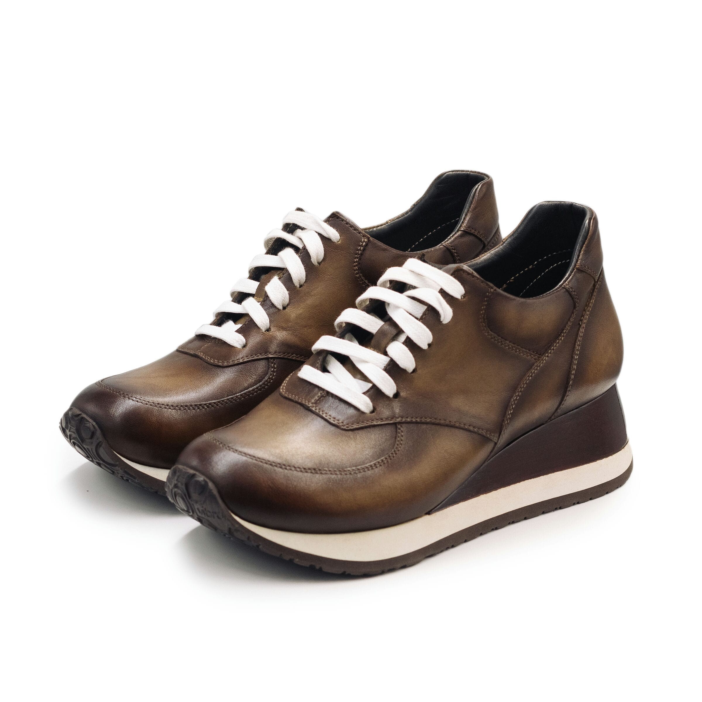 Кросівки зі шкіряним клином темно-бежеві з натуральної шкіри: індивідуальне пошиття на замовлення у Києві