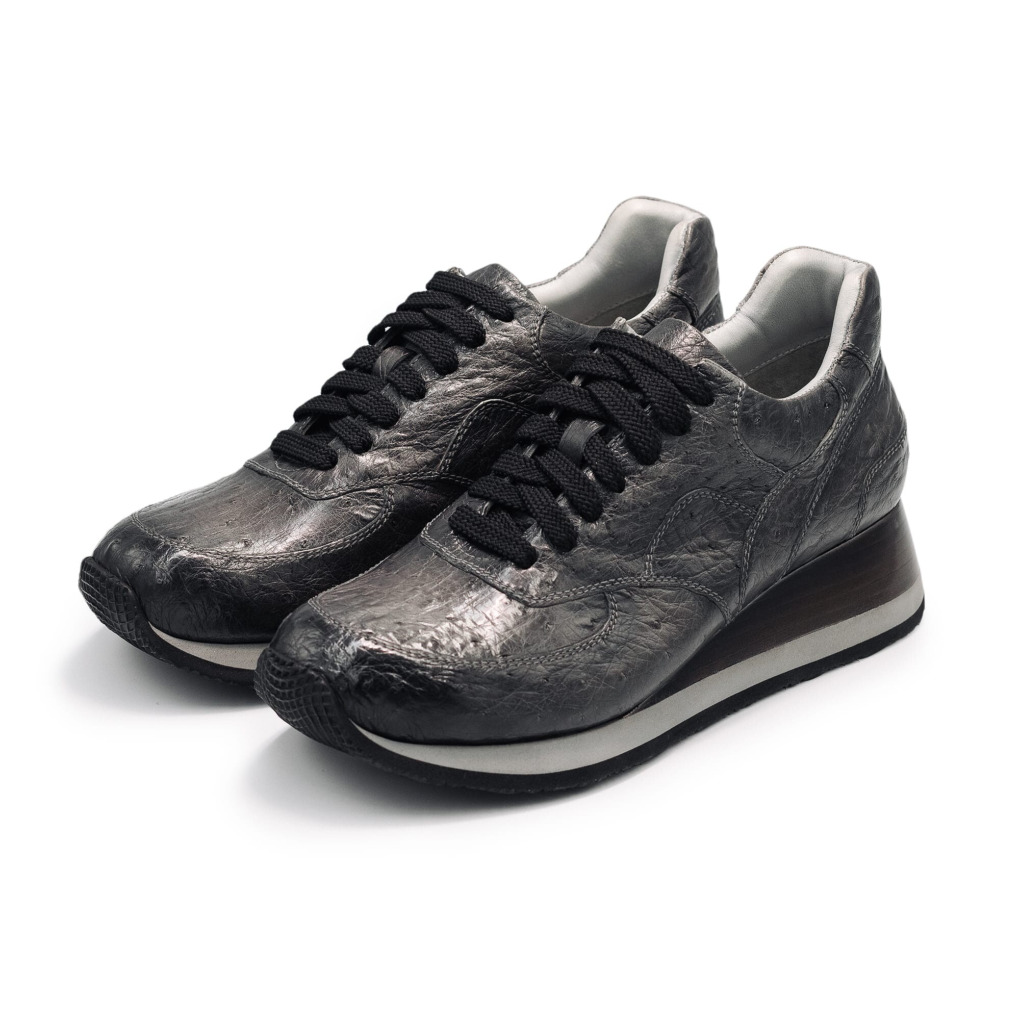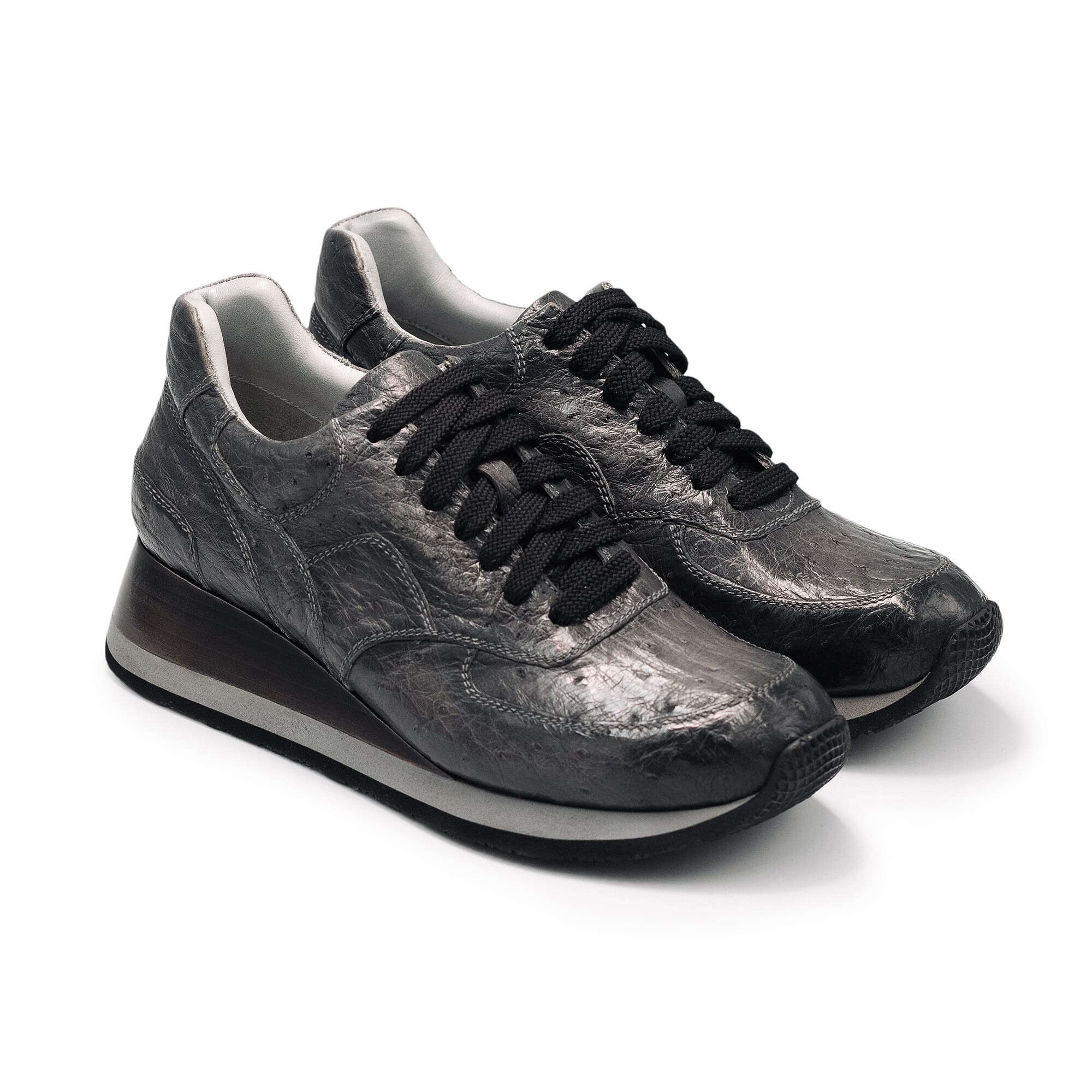Кросівки зі шкіряним клином чорні (страус): індивідуальне пошиття на замовлення у Києві