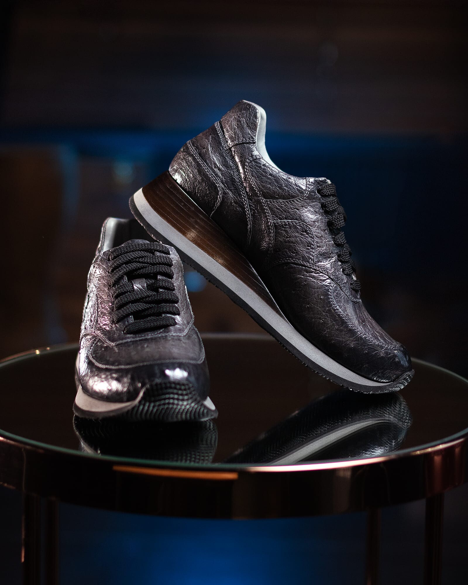 Не пропустіть шанс висловити свою індивідуальність за допомогою кросівок зі шкіряним клином (страус) від ательє Vicelli у Києві. Замовте собі цю неповторну пару вже зараз!